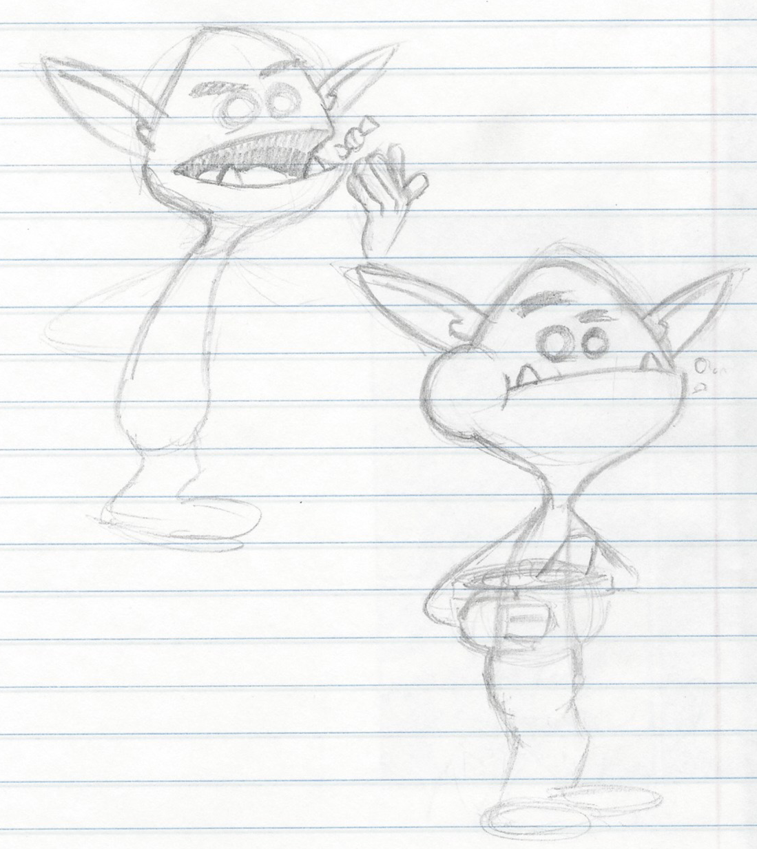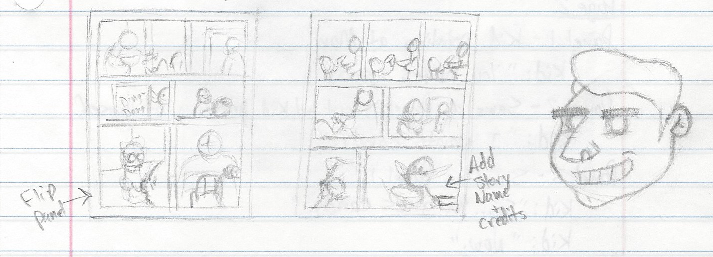 Bottom right: A quick sketch idea that popped in my mind when I was laying out the comic. I would later use this for Page 2, Panel 6 of the final comic.