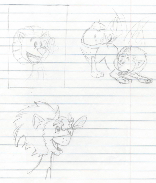 Bottom left: A quick sketch of the lion playing with the Butterfly